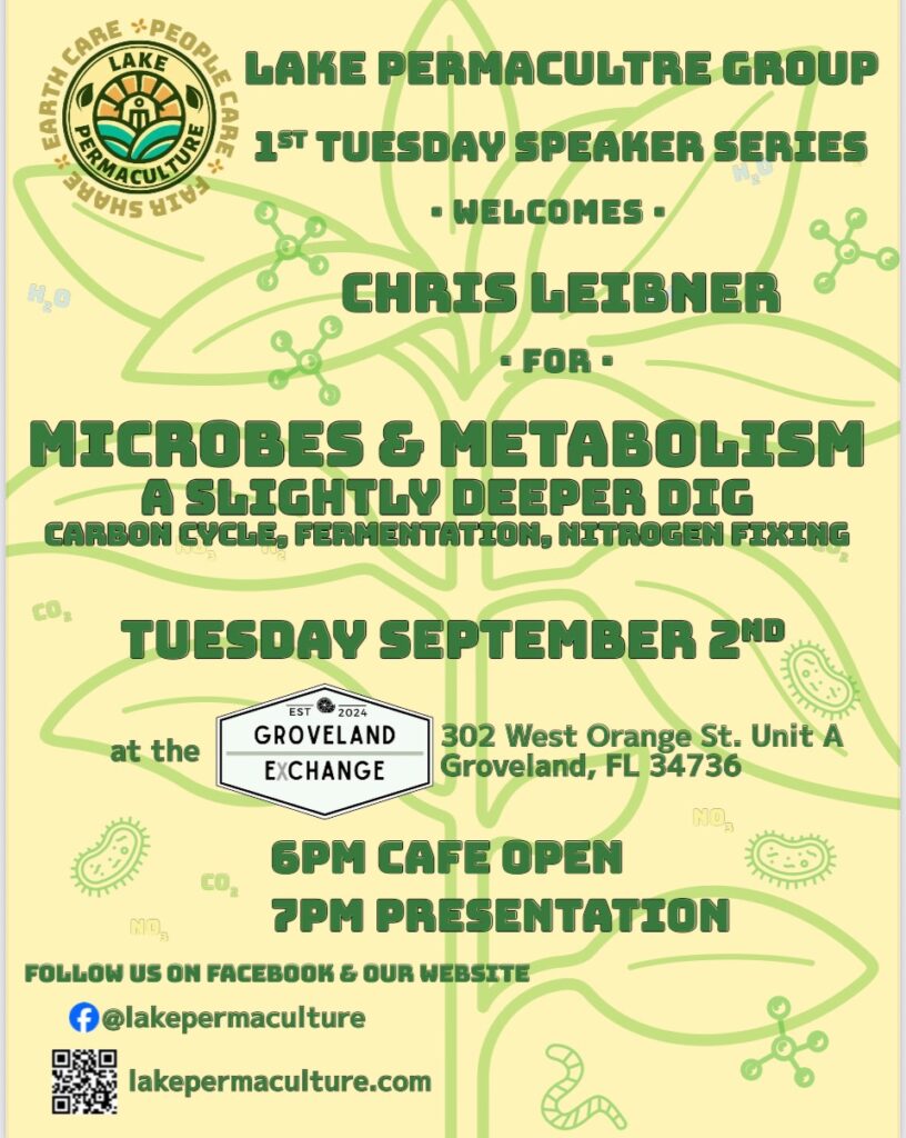 Lake Permaculture Lake County, Florida Non-Governmental Disorganization: Permaculture Friends and Neighbors Public Meetings: First Tuesday Evening Every Month @ Groveland Exchange on Lake David. All are invited to join us. Apple Maps